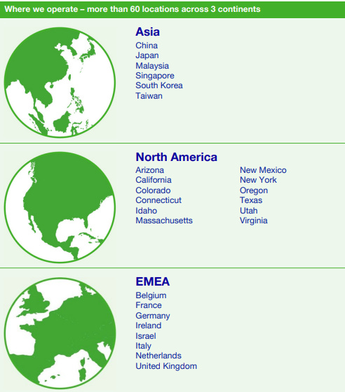 In addition to their Veldhoven headquarter, ASML has different sites around the world, primarily in the United States, Germany, and Taiwan. At these sites they conduct their R&D, manufacturing, and they also have some refurbishing activities.