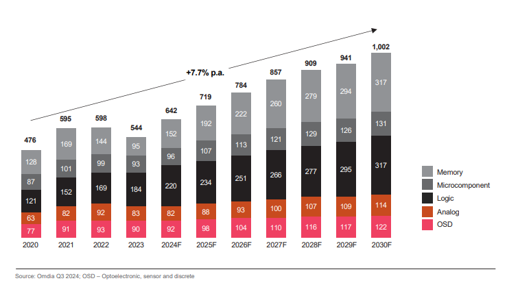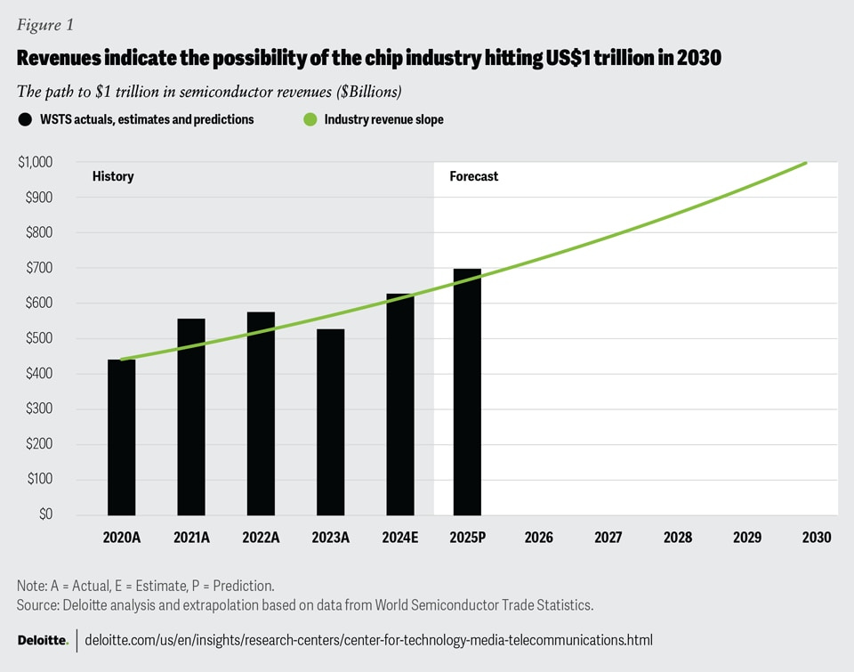 Deloitte estimates that the semiconductor market will grow to $1T revenue by 2030. This is almost a double compared to 2024, in which the total came in just above $600B.