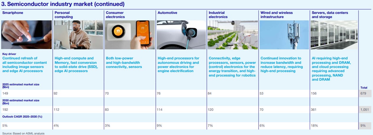 Of course, this is the overall semiconductor market. ASML covers a smaller part of that. The semiconductor market is mostly shaped by two main segments: logic and memory. These two groups generate the largest share of the overall market’s sales, and that trend is expected to continue towards 2030.