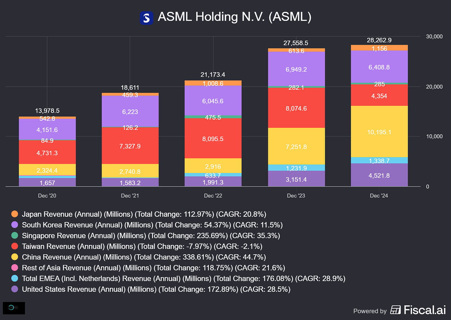 ASML’s differentiated strategy, deep co-development with leading chipmakers like Intel, TSMC, and Samsung allowed it to outpace competitors technologically and fundamentally.