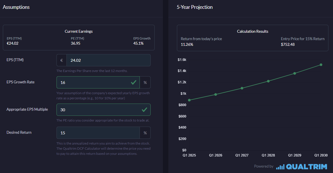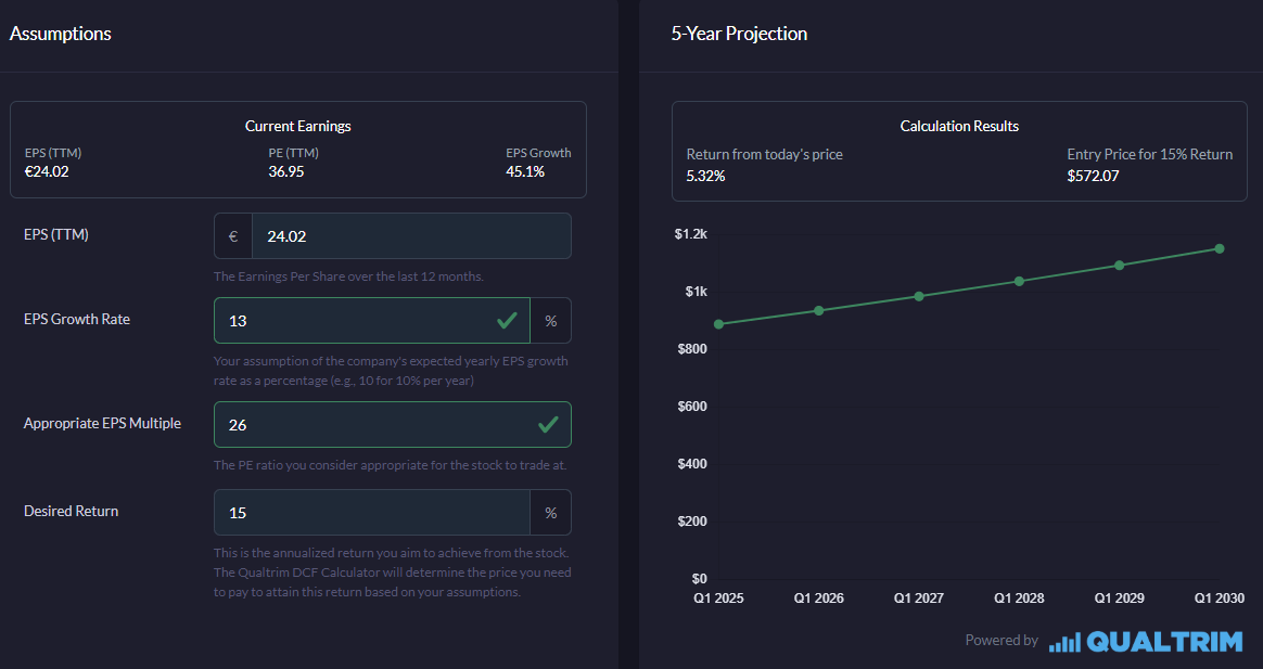Before we get to the big valuation chapter, with my bull, base and bear case, I also ran ASML’s numbers in Qualtrim’s EPS calculator.