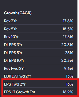 One could argue that this is still a bit too optimistic, even though EPS forecasts on fiscal.ai do point towards the 16% CAGR for the next few years.