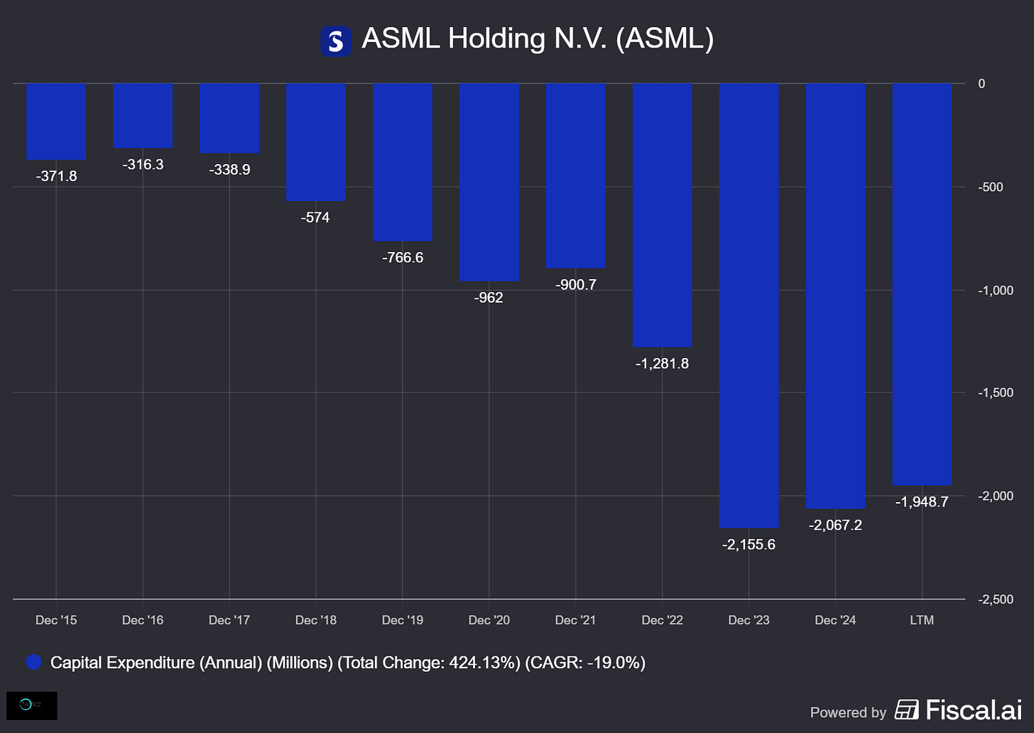 For reference, ASML’s machines cost about €300M on average, and their newest machines (high-na) cost up to €400M.