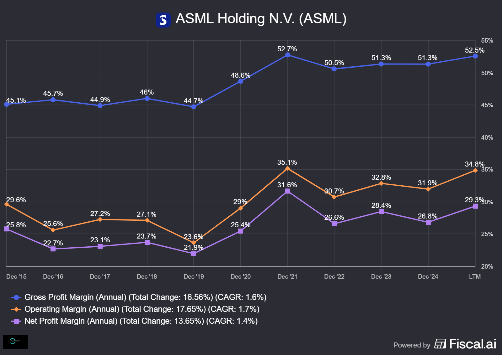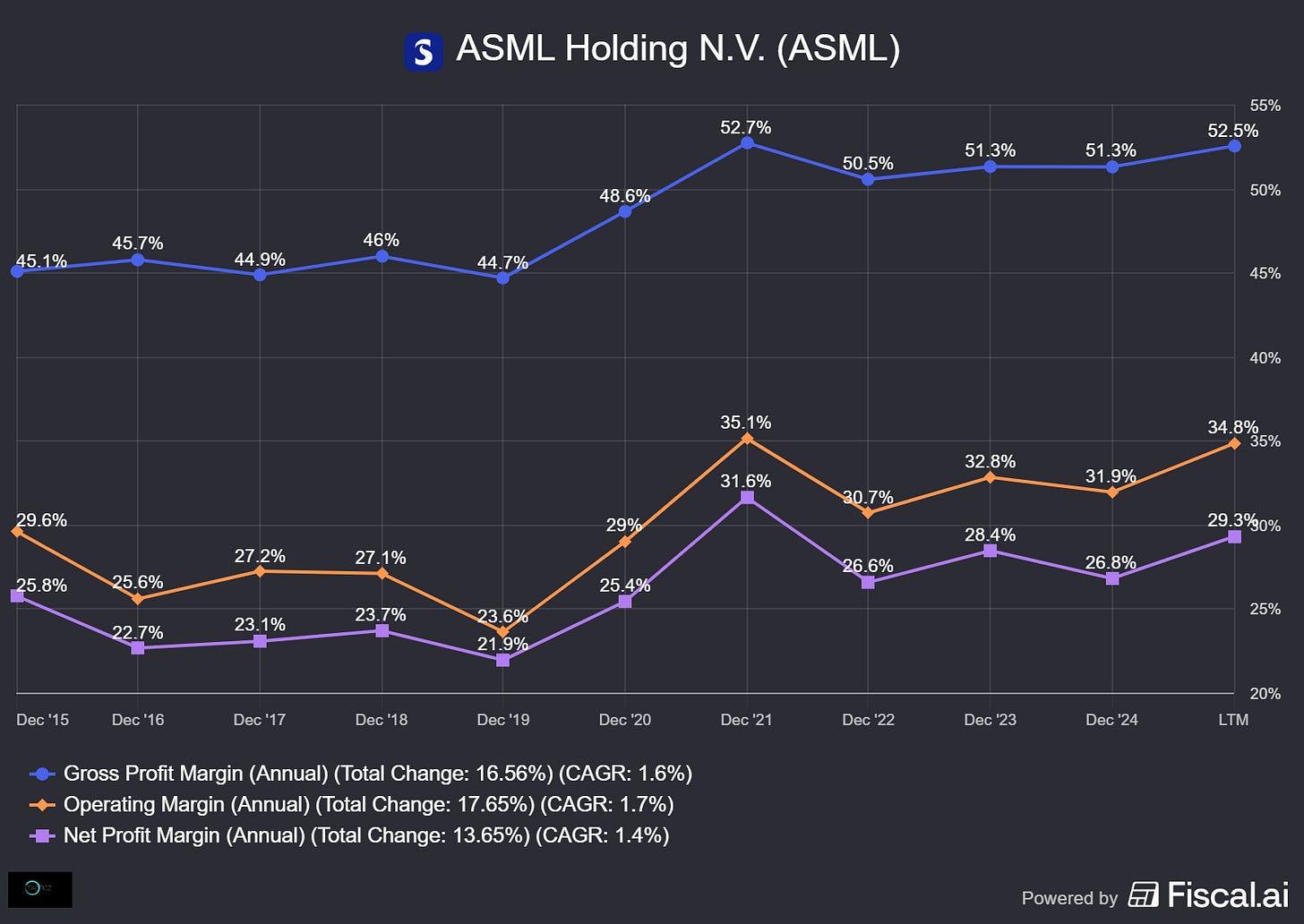 ASML’s core business is still cyclical. But, even though that’s the case, management does not seem concerned about short-term results but always focusses on the bigger picture. Guidance is given years ahead (2030) and short-term guidance is not sugarcoated and sometimes even non-existent.