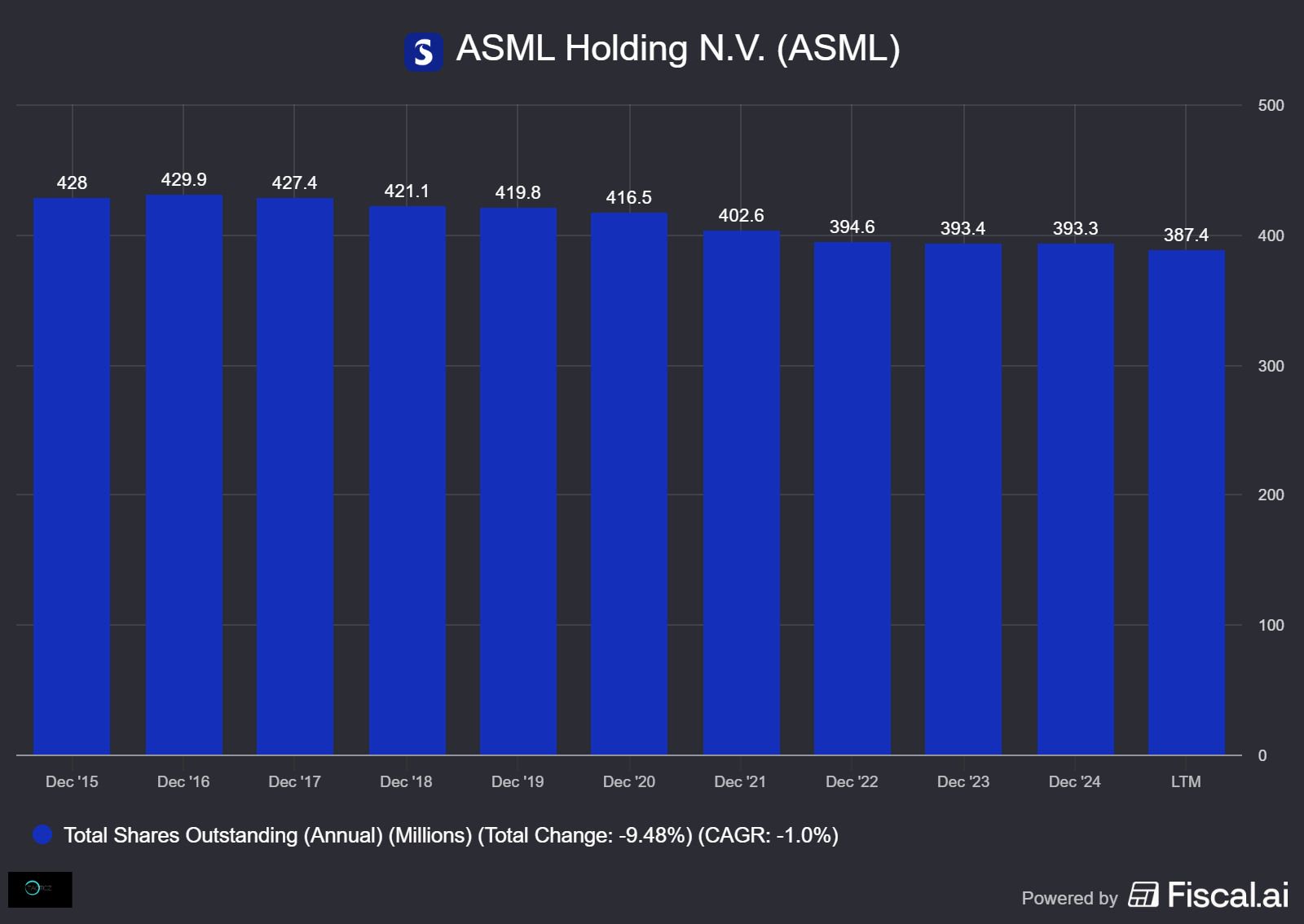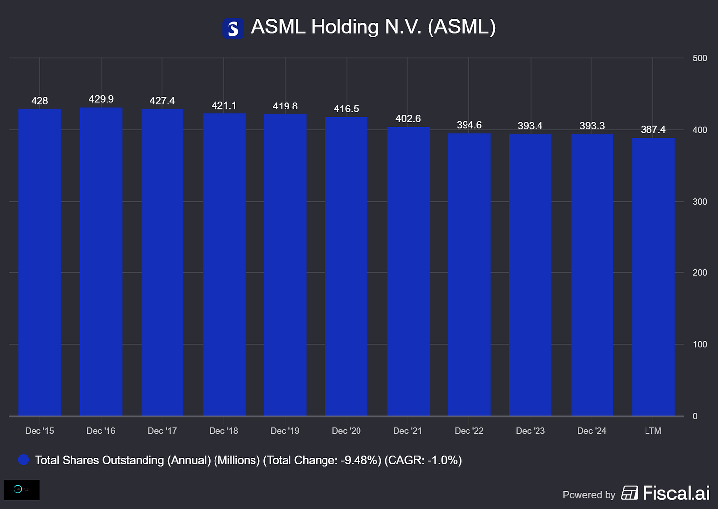 5-year average change in shares outstanding: -1.5% per year (expected ±-3% in 2025)